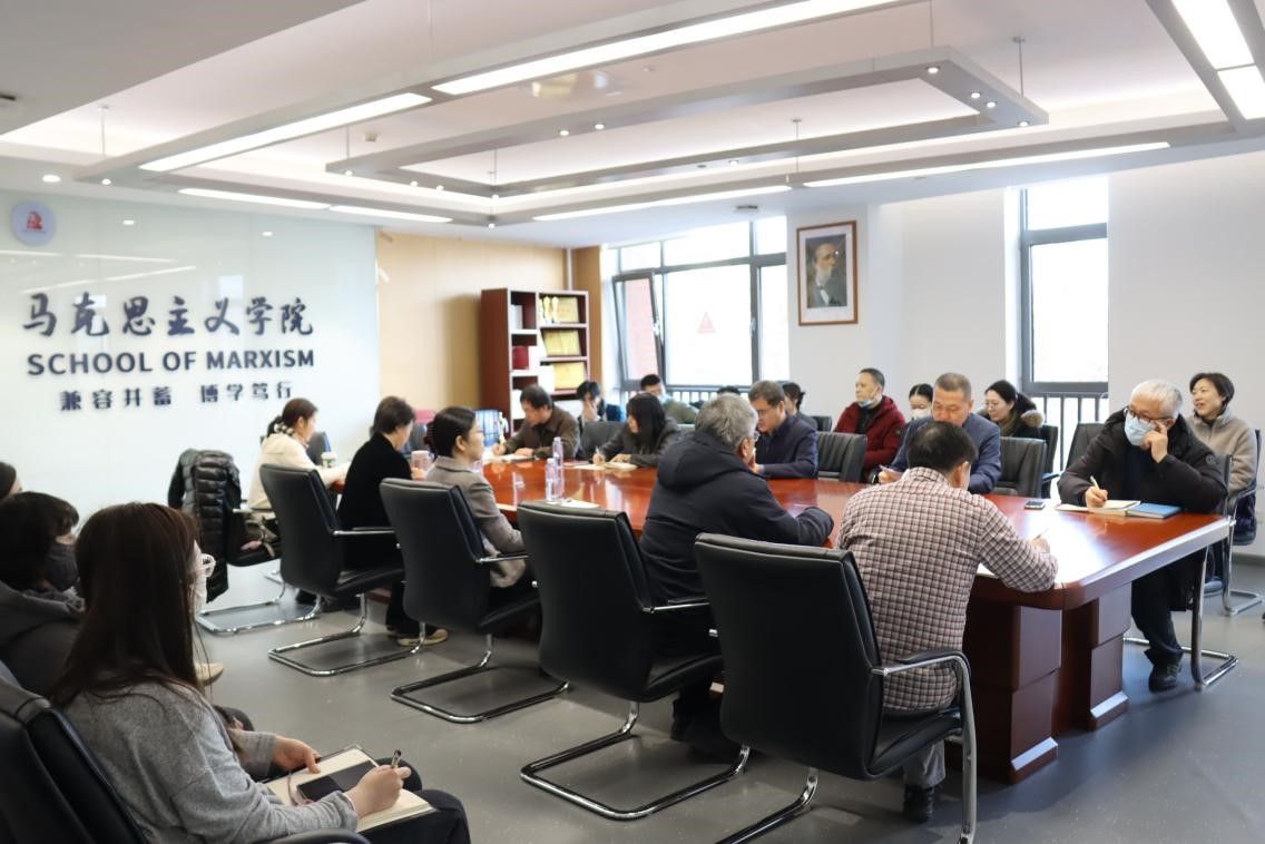 韩强院长系统梳理了过去一年学院在思政课教学运行、教育教学改革、科研创新及研究生培养管理等关键领域取得的工作进展。党总支书记祝和军汇报并部署未来一段时间的重点工作:一是提高思政课教师队伍的政治素质,从政治上看马院建设,看思政课建设;二是推进习近平新时代中国特色社会主义思想融入各门思政课程,坚持思政课程建设及党的创新理论武装同步推进;三是坚持走好新时代的群众路线,以制定学院事业发展的“十五五”规划为契机,深入听取教师们的意见建议,做到严格管理与关心关爱相结合。