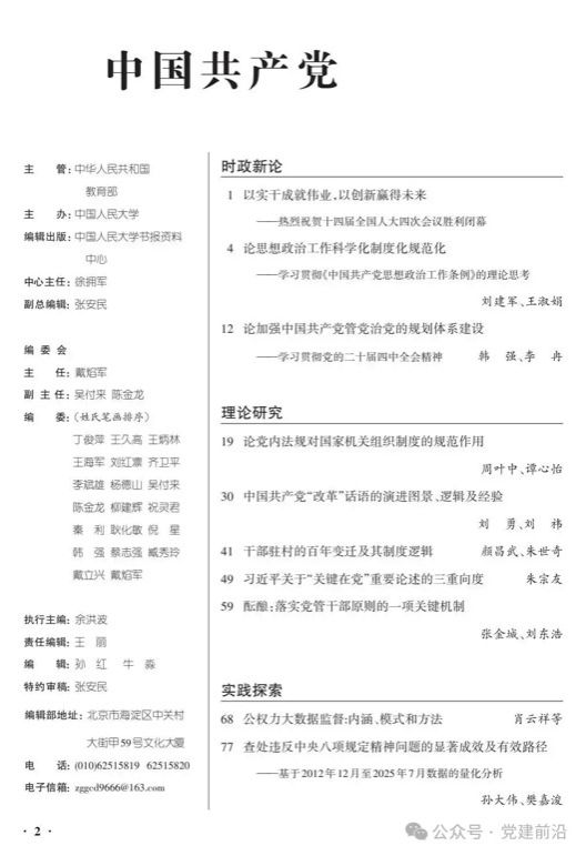 我院韩强教授、李冉老师题为《论加强中国共产党管党治党的规划体系建设学习贯彻党的二十届四中全会精神》的学术论文同时获得2026年第四期人大复印资料《中国共产党》和20262月《中国社会科学文摘》转载。